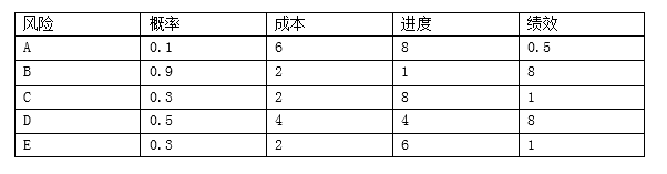 某项目中多个风险的发生概率和对成本、进度、绩效的影响如下表所示: