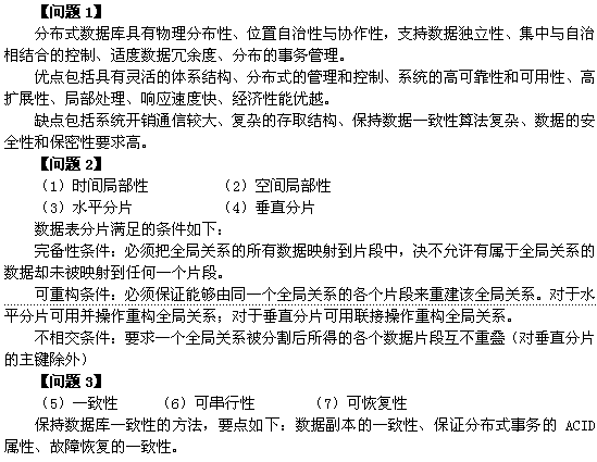 阅读以下关于分布式数据库的叙述,在答题纸上回答问题1至问题3。