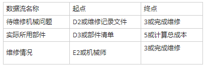 处理3只有输出数据流,没有输入数据流 D2、D3是黑洞只有输入的数据流,没有输出流,造成黑洞 父子图不平衡,在1-1和1-2中,1-1中从E2输入的数据流维修工时/维修情况,在图1-2中只有维修工时,造成父子图不平衡