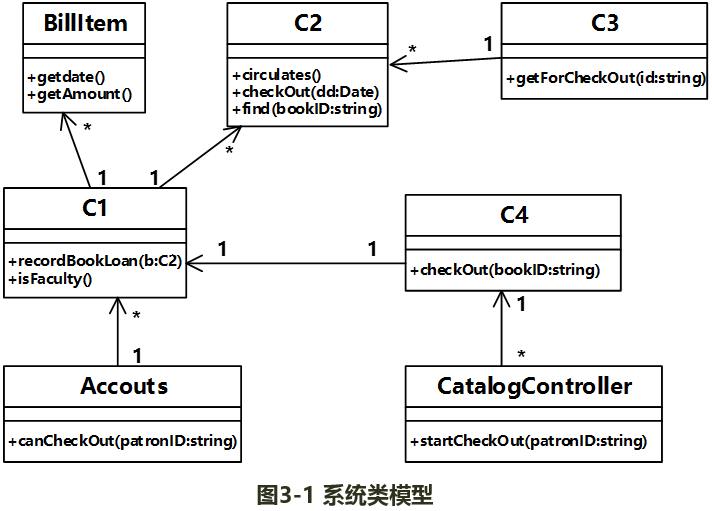 C2为Book,根据系统操作check Out的通信图,可以看出与Book关联的是Catalog,因此C3为Catalog。
