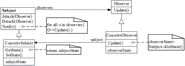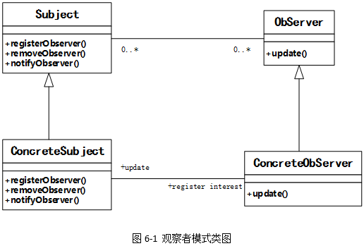现在采用观察者(Observer)模式来开发该系统。观察者模式的类图如图6-1所示。
