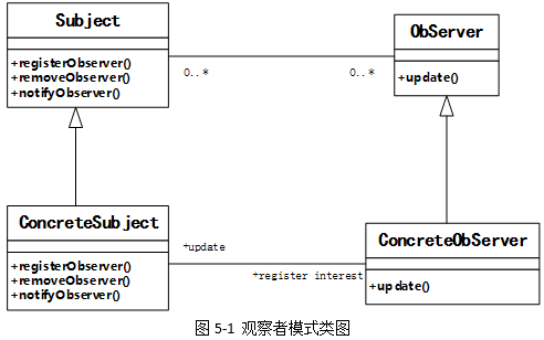 现在采用观察者(Observer)模式来开发该系统。观察者模式的类图如图5-1所示。