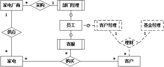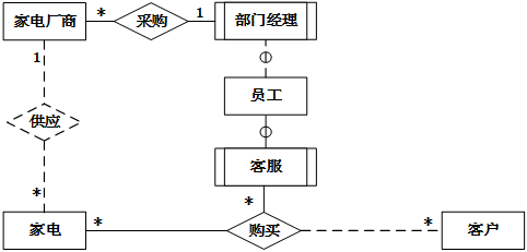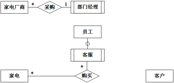 (2)电子商务公司根据销售情况,由部门经理向家电厂商订购各类家电。每个家电厂商只能由一名部门经理负责。